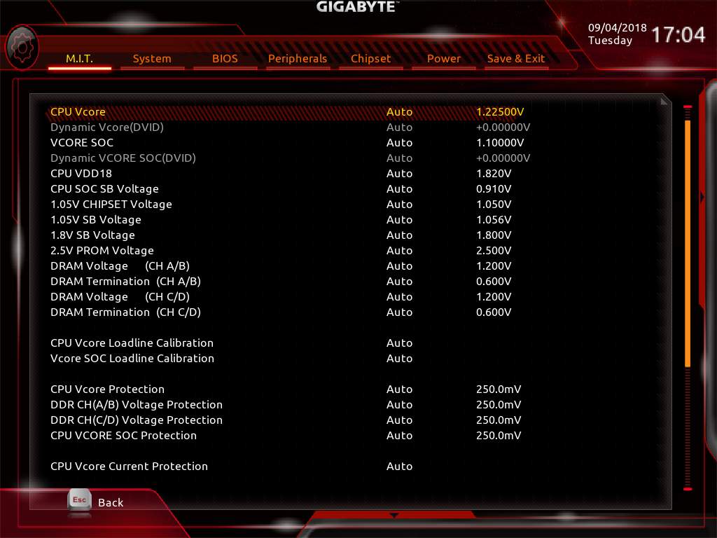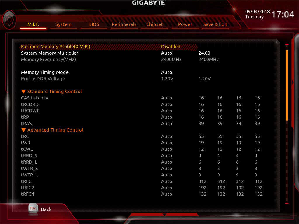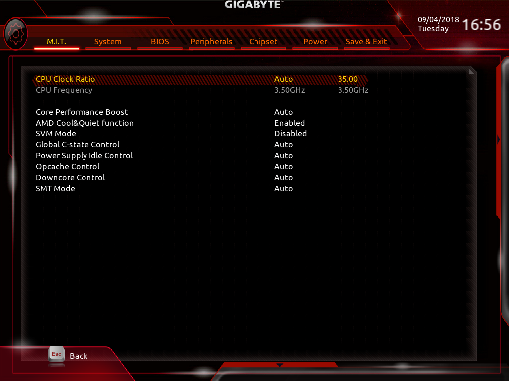 В BIOS платы X399 Aorus Xtreme предусмотрена возможность разгона процессора и памяти.
