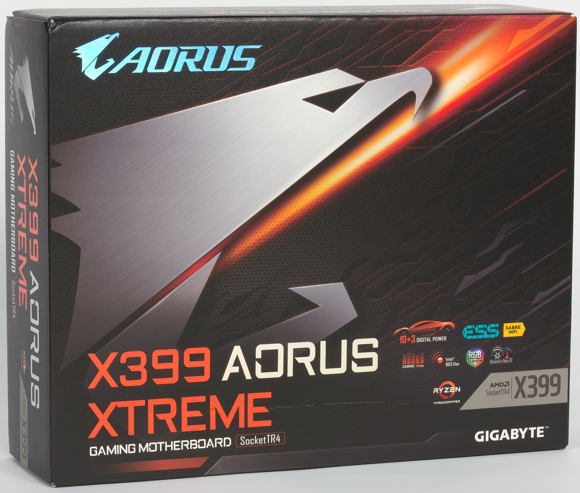 Плата X399 Aorus Xtreme поставляется в компактной по размерам картонной коробке, типичной для плат игровой серии Aorus.