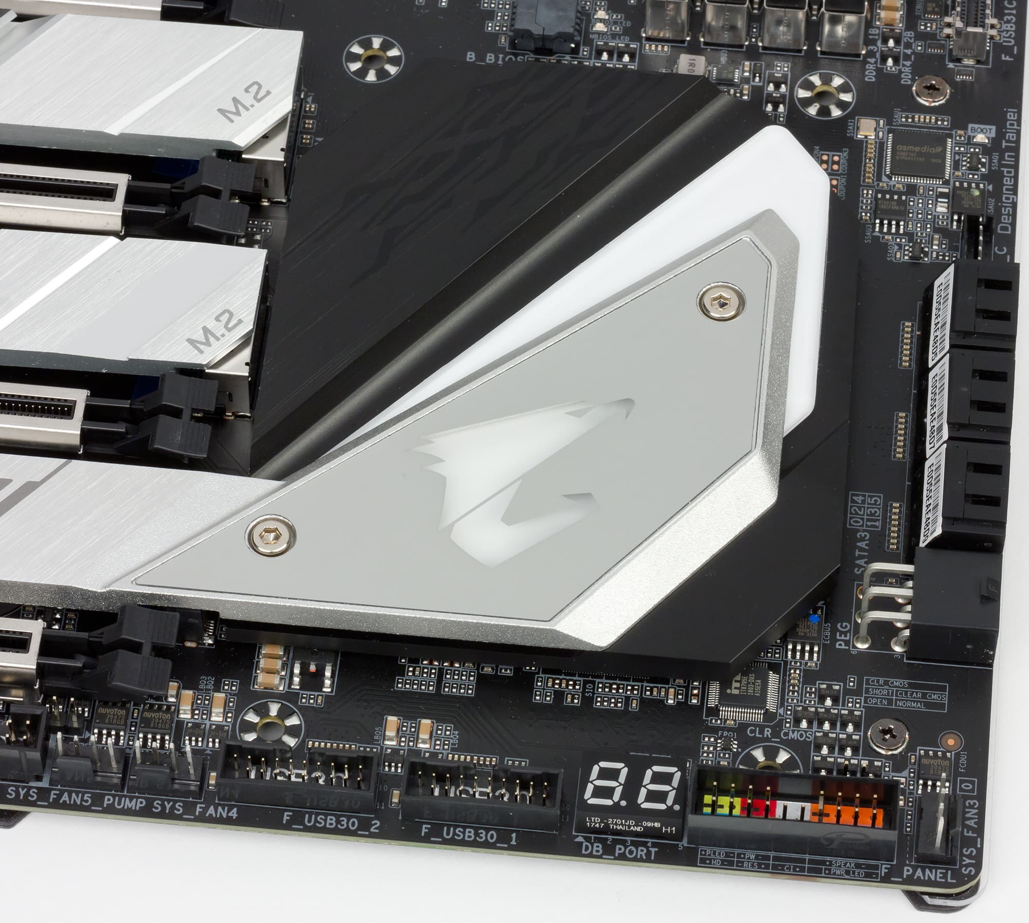 Как именно здесь подключены контроллеры Aquantia AQC107 и ASMedia ASM3142, нам не удалось выяснить у компании Gigabyte. Впрочем, не так уж это и важно. Главное, что здесь ничего не разделяется.