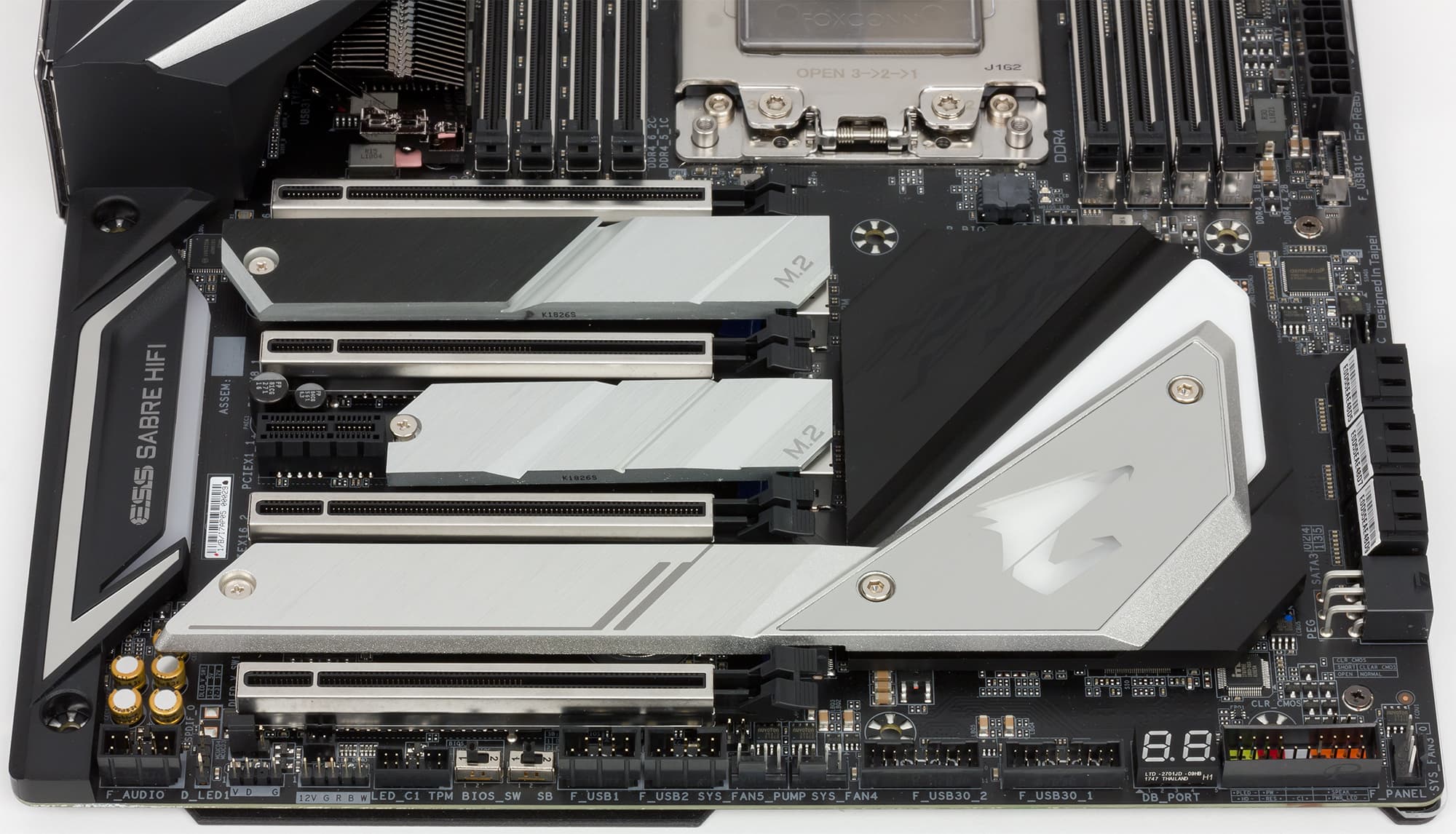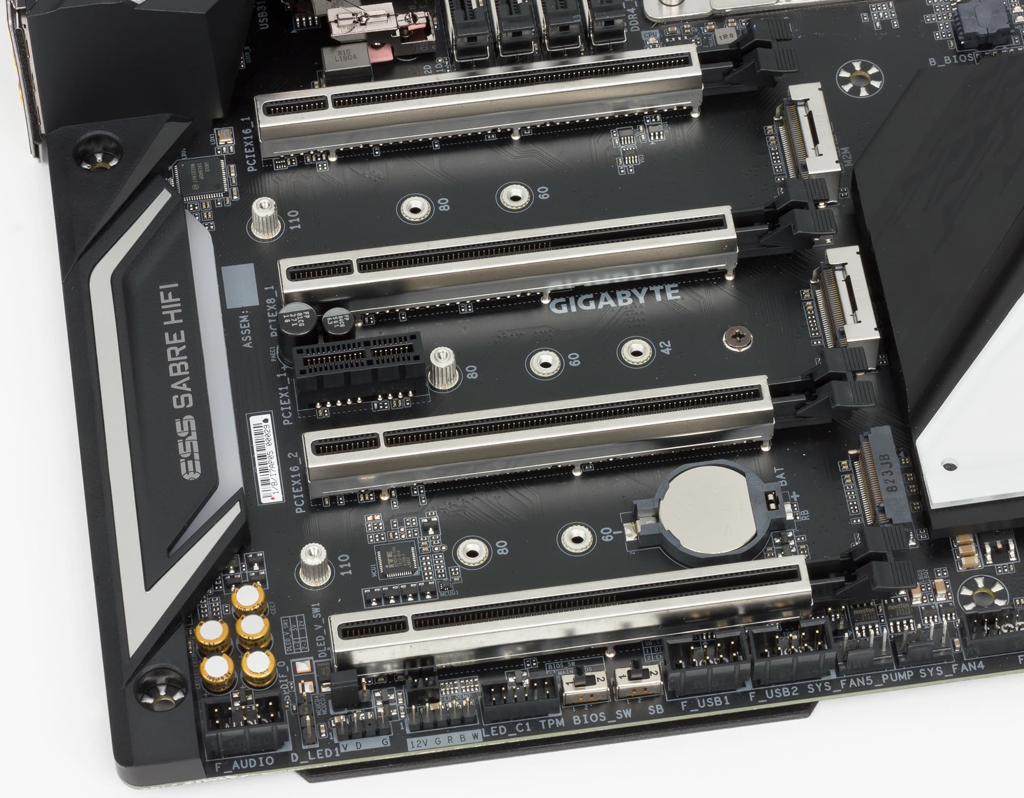 Аудиоподсистема платы X399 Aorus Xtreme основана на HDA-аудиокодеке Realtek ALC1220. Все элементы аудиотракта выделены в отдельную зону на PCB. Есть в аудиотракте и специализированный DAC ESS ES9118.