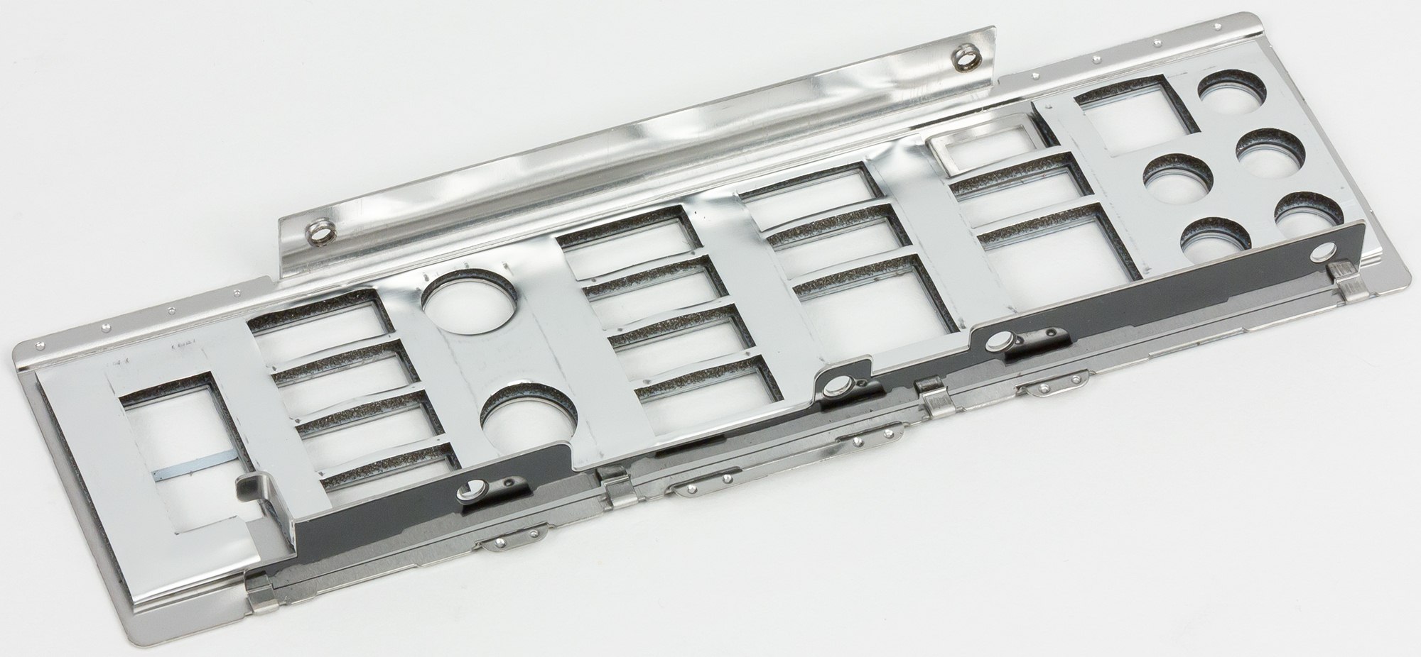 Заглушка, традиционно надеваемая на заднюю панель, в данном случае уже надета, и изнутри экранирована для снижения электромагнитных помех.
