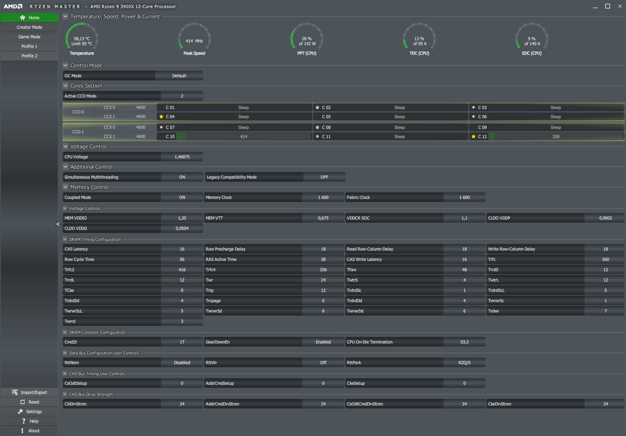 Ryzen Master предлагает два основных режима использования процессора, и в зависимости от них выставляет нужные параметры работы CPU: Creator Mode и Game Mode. Желающие экспериментов могут создать свои профили и пресеты.
