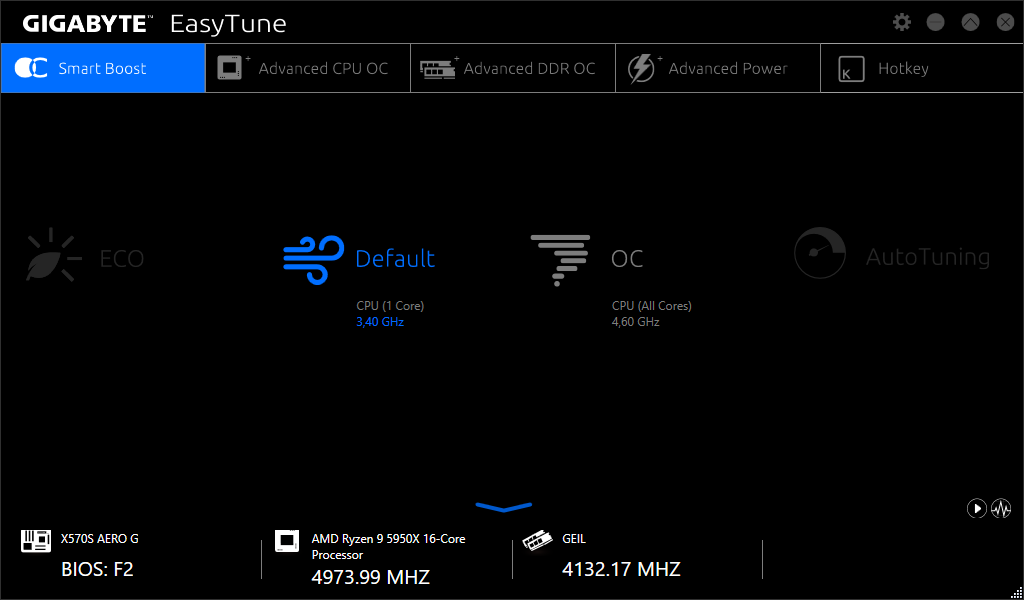 Попытка выставить 4.6 ГГц по всем ядрам через программу EasyTune увенчалась успехом. Причем одним лишь кликом мыши – установив режим разгона (ОС).