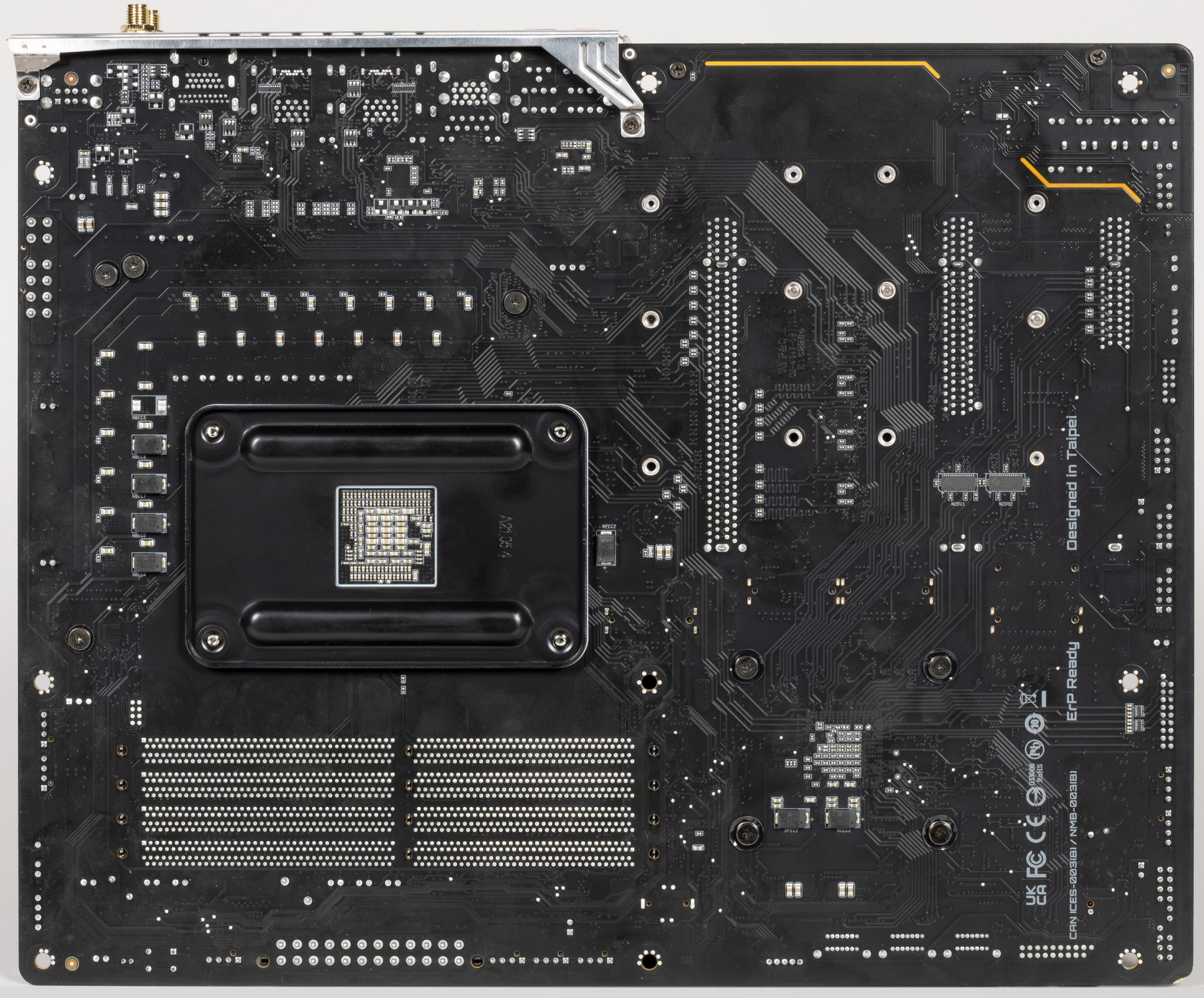 В отличие от слотов для памяти, два слота PCIe x16_1/2 имеют металлическое армирование из нержавеющей стали, которое увеличивает надежность слотов и предохраняет их от электромагнитных помех.