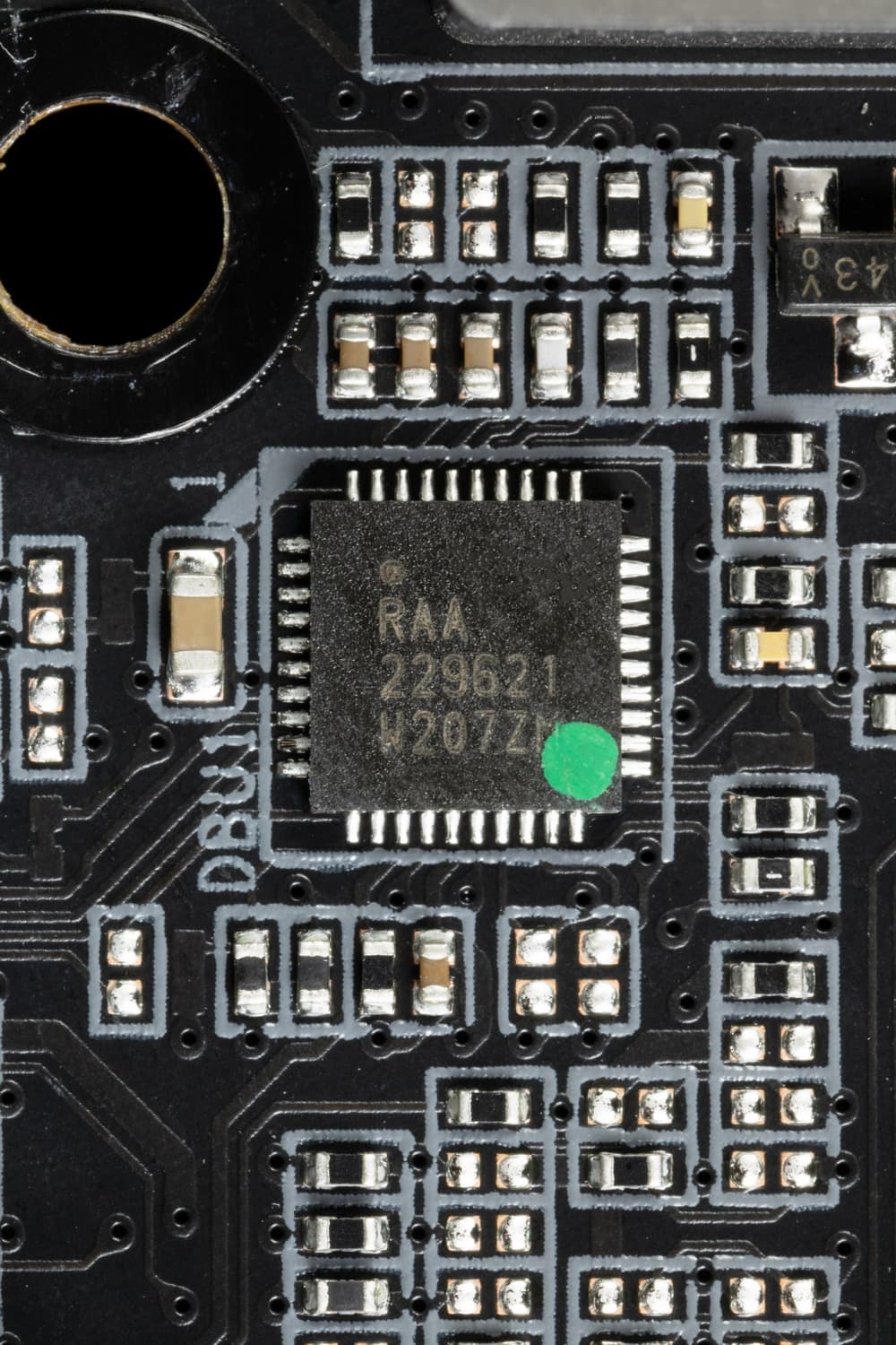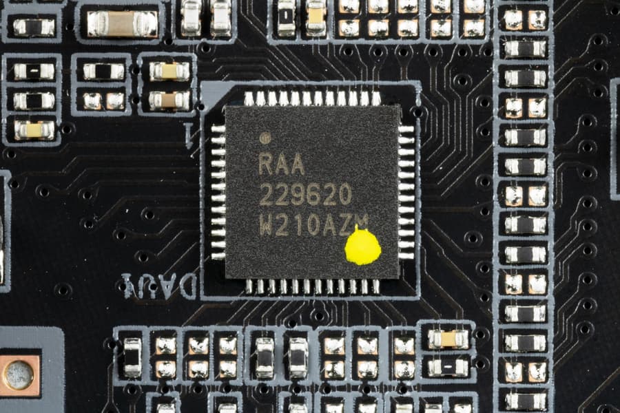 Каждая фаза VCore имеет по транзисторной сборке RAA22010540 от Renesas (до 105А).