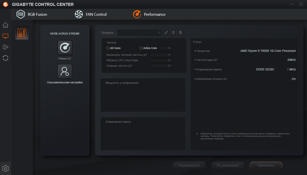 Запускаем все в режиме по умолчанию. Затем нагружаем тестами от OCCT (по техническим причинам скриншоты показать нет возможности).