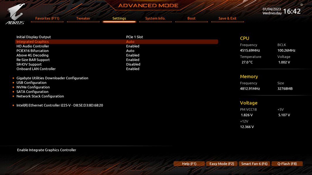 | Сетевые контроллеры | 1 × Intel i225-V Ethernet 2.5 Гбит/с 1 × Intel Dual Band Wireless AX210NGW (Wi-Fi 802.11a/b/g/n/ac/ax (2,4/6 ГГц) + Bluetooth 5.2) |