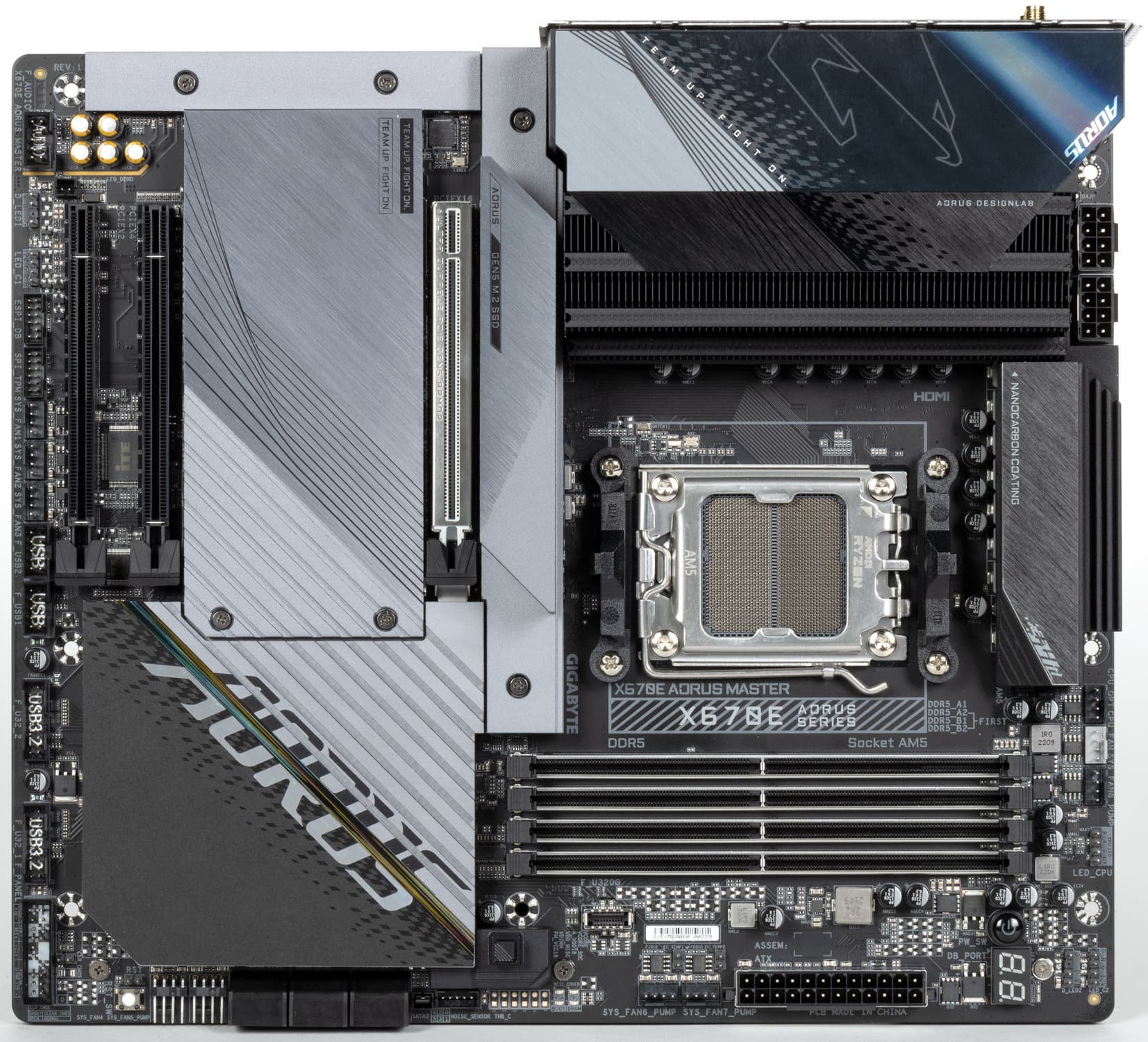 Материнская плата Gigabyte X670E Aorus Master — флагманский, второй по уровню (после Aorus Xtreme) представитель топовой серии Aorus для процессорного разъема AM5 со стоимостью в районе 40 тысяч рублей. Плата поддерживает процессоры AMD Ryzen 7000 и создана для хардкорных геймеров и энтузиастов-оверклокеров. По крайней мере, об этом свидетельствует потенциал системы охлаждения.
