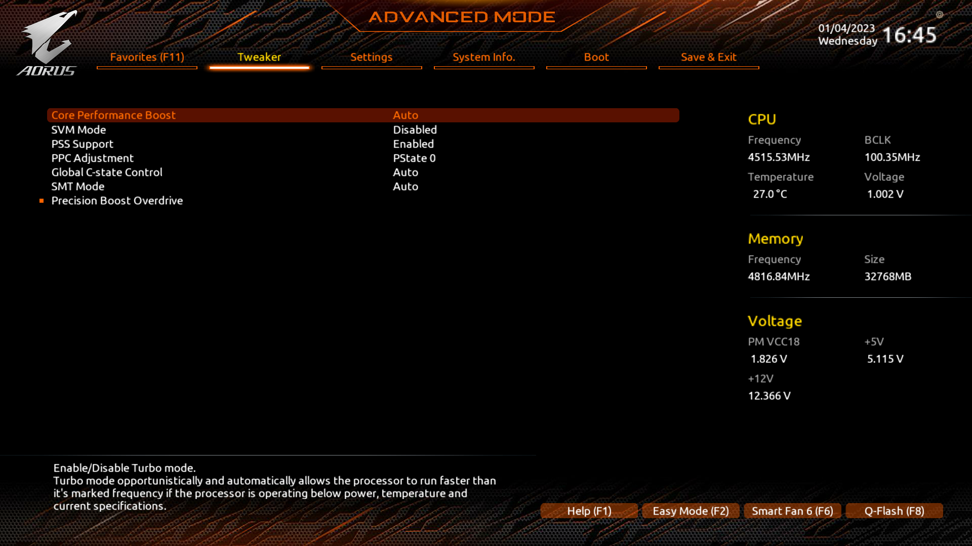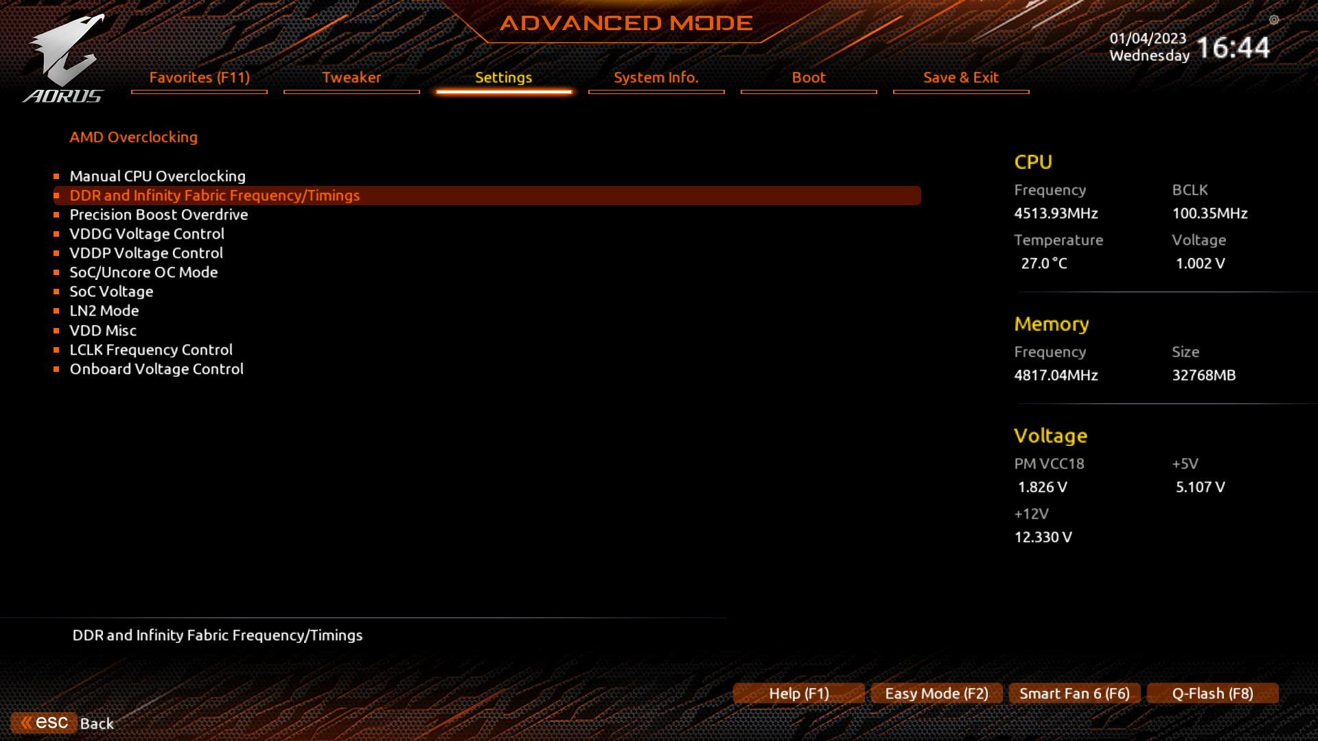 Хорошо известно, что современные технологии авторазгона от Intel (Turbo Boost) и AMD (Precision Boost) базируют свои лимиты подъема частот на информации о системе питания на той или иной матплате (сами понимаете, все контроллеры цифровые, в UEFI вся информация имеется). Также следует отметить, что данная плата от Gigabyte способна четко реализовать контроль за частотой IF (Infinity Fabric) (разумеется, если она выставлена в режиме Auto) и выставляет множитель для частоты памяти автоматически.