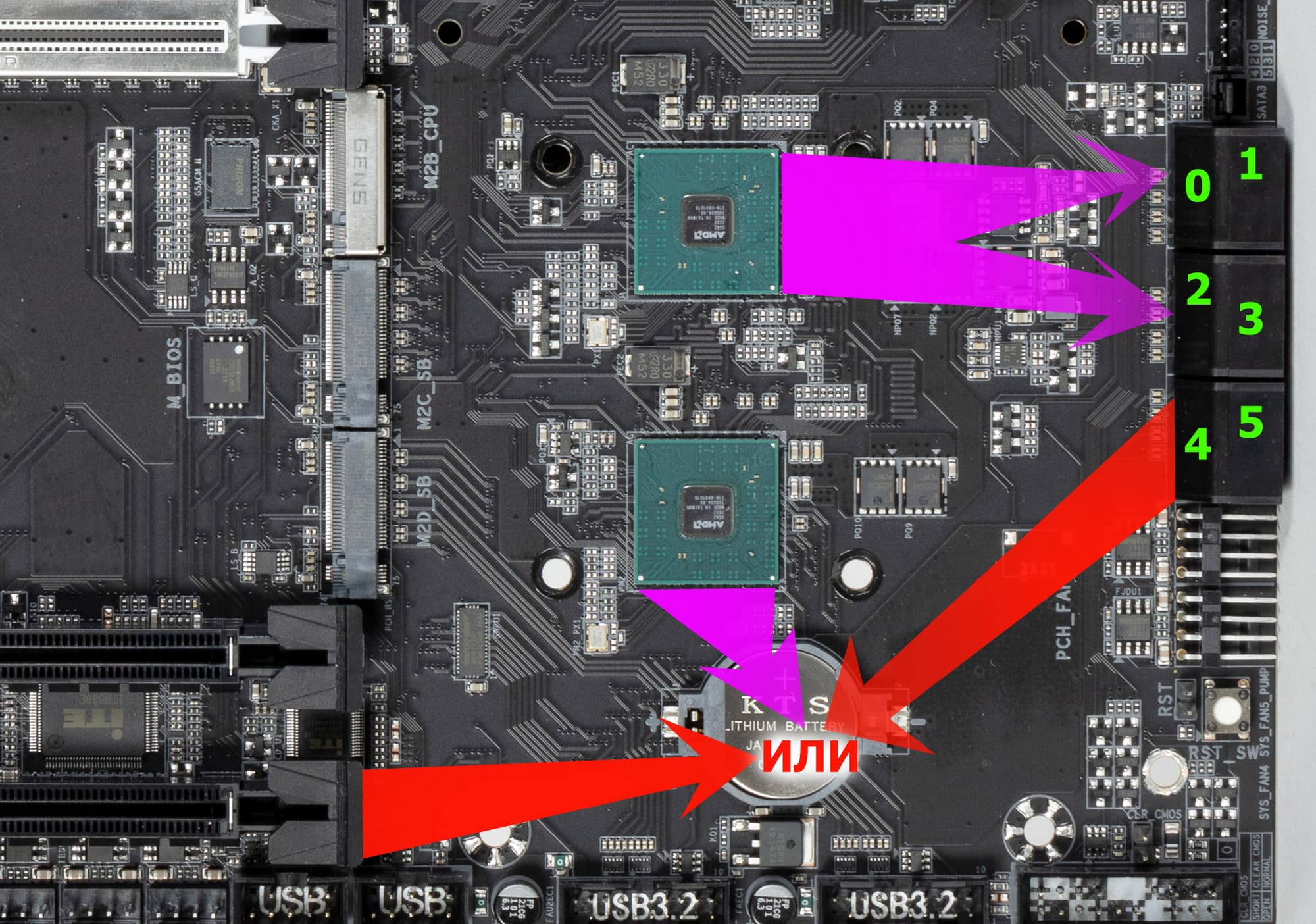 - Переключатель: или слот PCIe x16_3, или порты SATA 4,5 (максимум 2 линии PCIe 3.0);