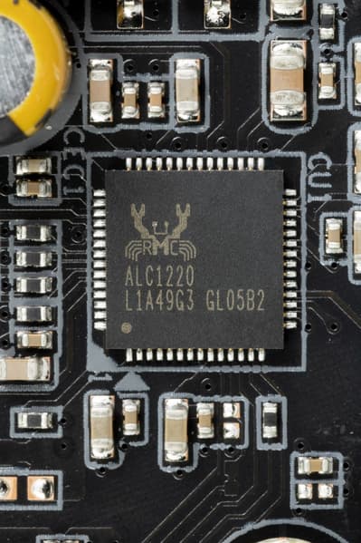 Мы знаем, что уже достаточно давно в большинстве современных материнских платах звуком заведовал аудиокодек Realtek ALC1220. Он обеспечивает вывод звука по схемам до 7.1 с разрешением до 24 бит / 192 кГц. Мы видели уже и ALC4082 того же производителя с улучшенными характеристиками 32 бит / 384 кГц. Однако в данном случае мы видим возврат к прежнему ALC1220.