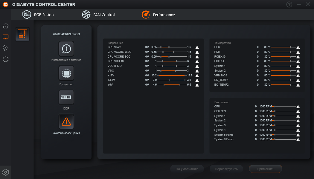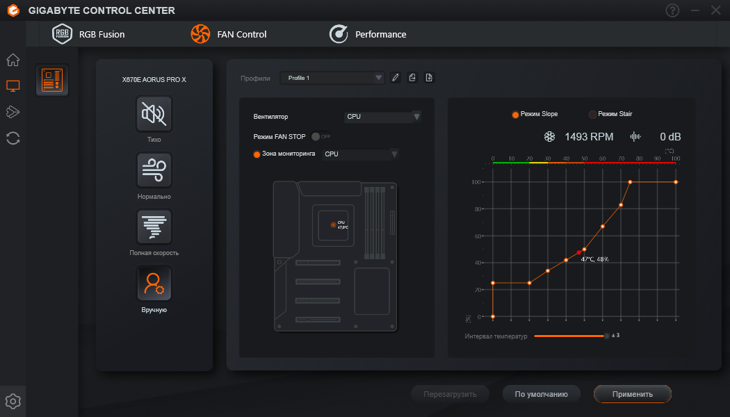 Запускаем все в режиме по умолчанию. Затем нагружаем тестами от OCCT.