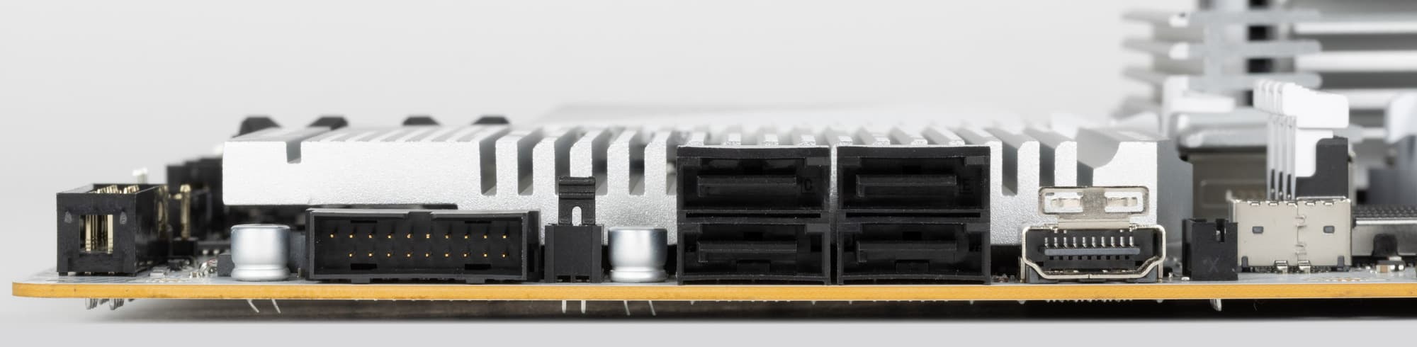 Всего у платы 4 разъема Serial ATA 6 Гбит/с + 4 слота для накопителей в форм-факторе M.2.