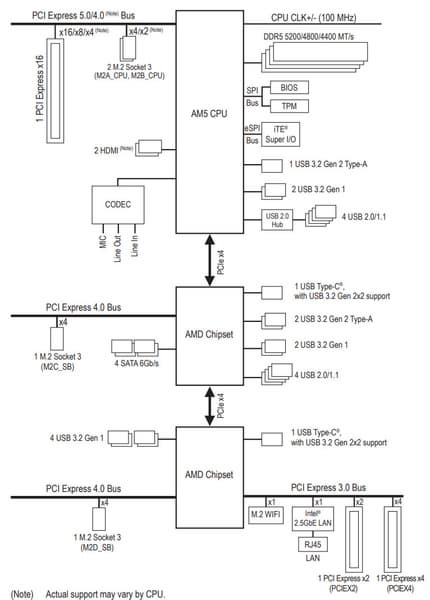 Примечание: * – 4 линии PCIe 4.0 могут быть зарезервированы для контроллера USB4 как у чипсета X870E, так и у CPU.