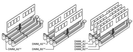 Для установки модулей памяти на плате имеется четыре DIMM-слота (для работы памяти в Dual Channel в случае использования всего 2 модулей их следует устанавливать в А2 и B2).