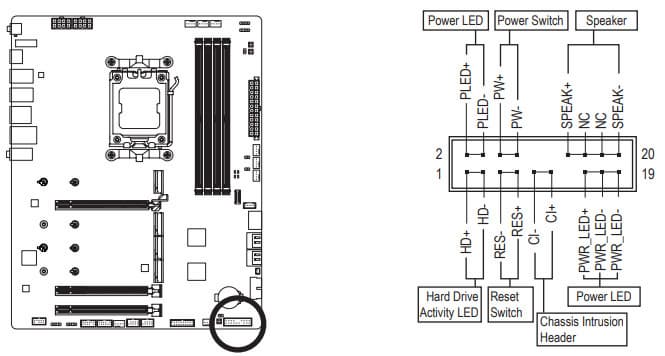 | Прочие внутренние элементы | 24-контактный разъем питания ATX 2 8-контактных разъема питания EPS12V 1 слот M.2 (E-key), занят адаптером беспроводных сетей 1 разъем для подключения порта USB 3.2 Gen2x2 Type-C 2 разъема для подключения 4 портов USB 3.2 Gen1 2 разъема для подключения 4 портов USB 2.0 8 разъемов для подключения 4-контактных вентиляторов и помп ЖСО 3 разъема для подключения адресуемой ARGB-ленты 1 разъем для подключения неадресуемой RGB-ленты 1 разъем аудио для передней панели корпуса 1 разъем HDMI для подключения фирменной панели Gigabyte (приобретается отдельно) 1 разъем для систем безопасности TPM 1 разъем для подключения фирменной карты Gigabyte Thunderbolt4 1 разъем для датчика шума 2 разъема для термодатчиков 1 разъем для подключения управления с передней панели корпуса |