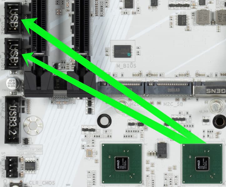 Повторим: чипсет X670E способен реализовать максимально: 8 портов USB 3.2 Gen2/1, 2 USB 3.2 Gen2x2, 12 портов USB 2.0. Процессор Ryzen 7000/9000 способен реализовать до 4 портов USB 3.2 Gen2 и 1 USB 2.0.