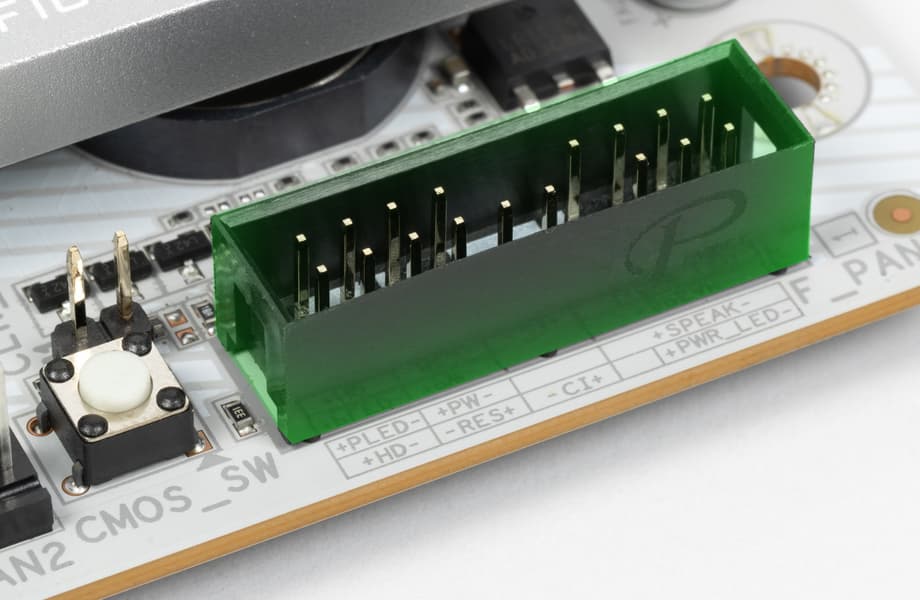Все M.2 слоты на матплате имеют радиаторы. Слот M2A_CPU обладает отдельным очень толстым радиатором, когда как остальные M.2 слоты имеют общий радиатор. Следует отметить, что слот M2A_CPU кроме охлаждения верхней стороны имеет еще и нижний радиатор.