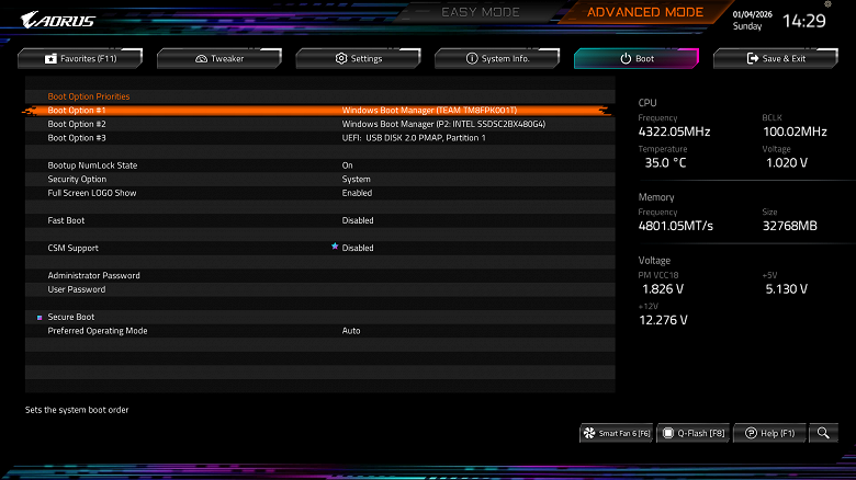 | Сетевые контроллеры | 1 × Intel i226-V Ethernet 2,5 Гбит/с 1 × Qualcomm Dual Band Wireless QCNCM865 (Wi-Fi 7 802.11a/b/g/n/ac/ax/be (2,4/5/6 ГГц) + Bluetooth 5.4) |