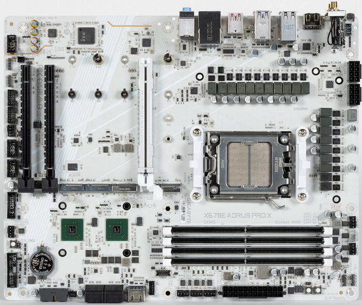 Плата Gigabyte поддерживает процессоры AMD поколений 7xxx/8xxx/9xxx, выполненные под разъем (сокет) AM5.