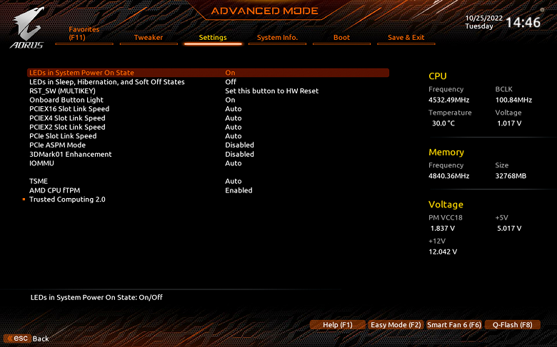 | Разъемы для накопителей | 6 × SATA 6 Гбит/с (X670E) 4 × M.2 (CPU, PCIe 5.0 x4 для устройств формата 2260/2280/22110) |