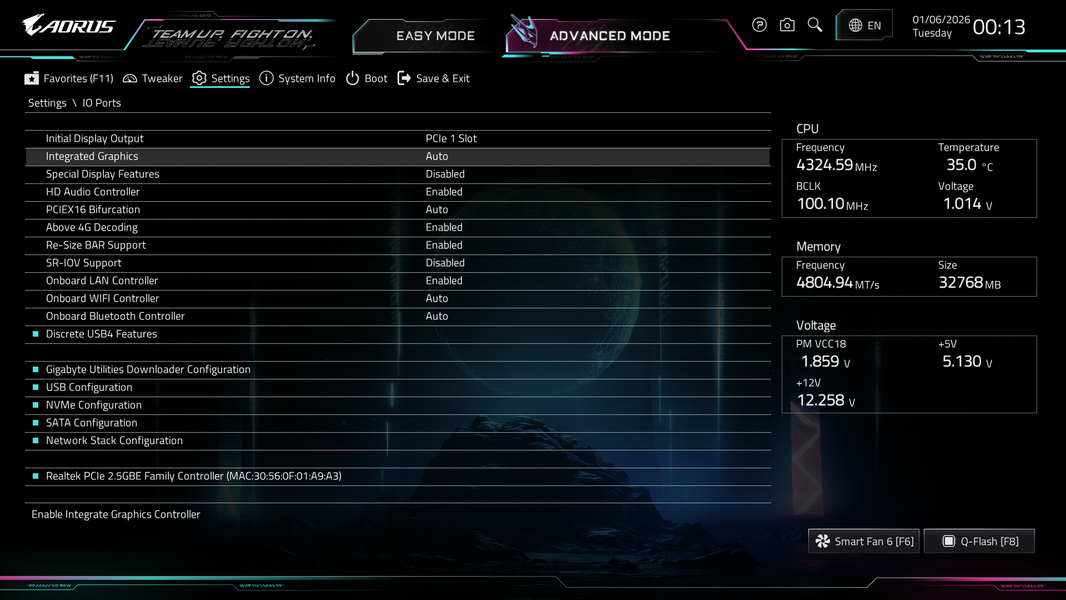 Материнская плата оснащена средствами связи отлично. Имеется скоростной Ethernet-контроллер Realtek RTL8125D, способный работать по стандарту 2,5 Гбит/с.