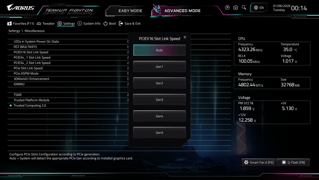 - Слот PCIe x16_1 имеет 8 линий PCIe 5.0, слоты M2A_CPU и M2B_CPU имеют по 4 линии PCIe 5.0.