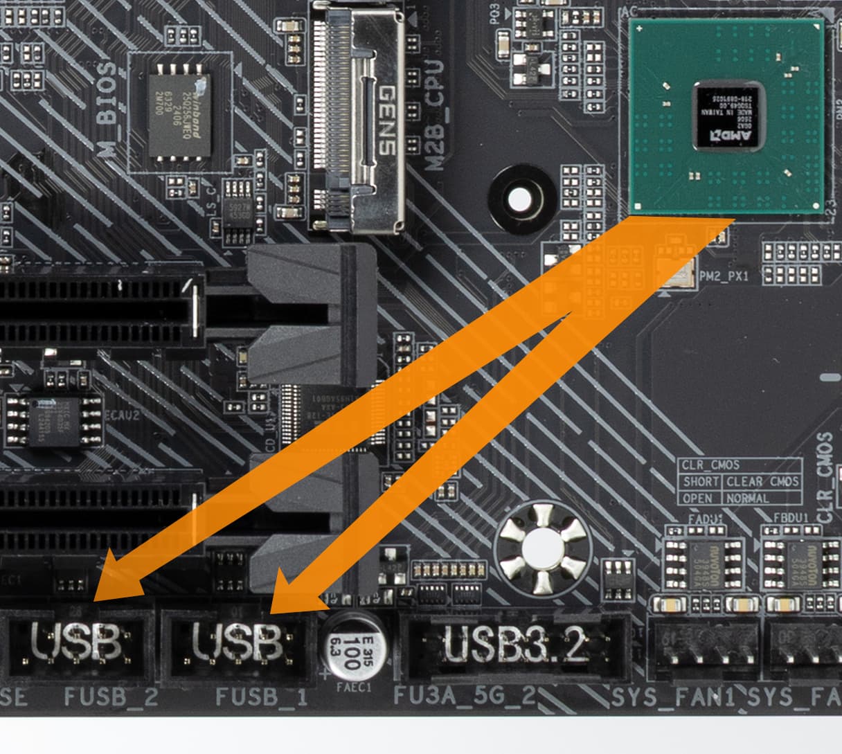 Повторим: чипсет X870E способен реализовать максимально: 8 портов USB 3.2 Gen2/1, 2 USB 3.2 Gen2x2, 12 портов USB 2.0. Процессор Ryzen 7000/9000 способен реализовать до 4 портов USB 3.2 Gen2 и 1 USB 2.0.