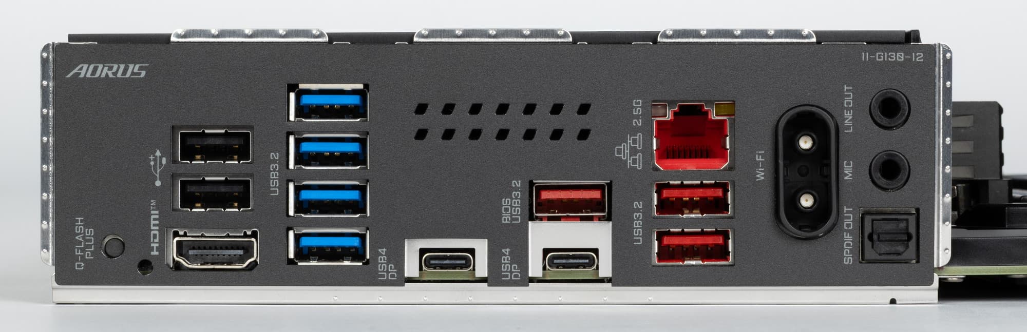 | Разъемы на задней панели | 2 × USB4 (Type-C) 3 × USB 3.2 Gen2 (Type-A) 4 × USB 3.2 Gen1 (Type-A) 2 × USB 2.0 (Type-A) 1 × RJ-45 2 аудиоразъема типа миниджек 1 × оптический S/PDIF (выход) 1 × HDMI (выход) 2 антенных разъема кнопка перепрошивки BIOS — Q-Flash Plus |