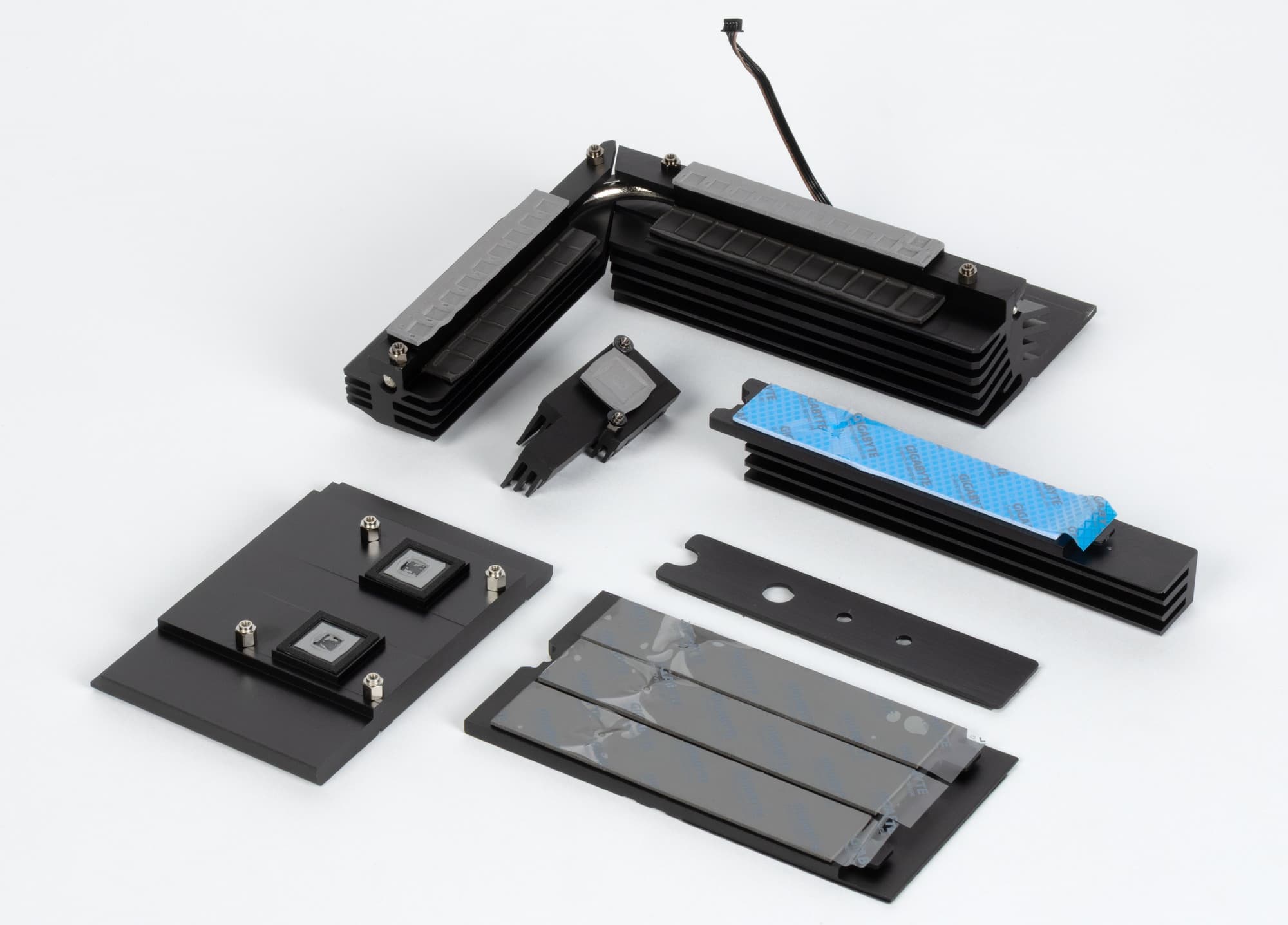 То есть следует отметить, что охлаждение системного чипсета (2 микросхемы) отдельно от охлаждения модулей в слотах M.2.