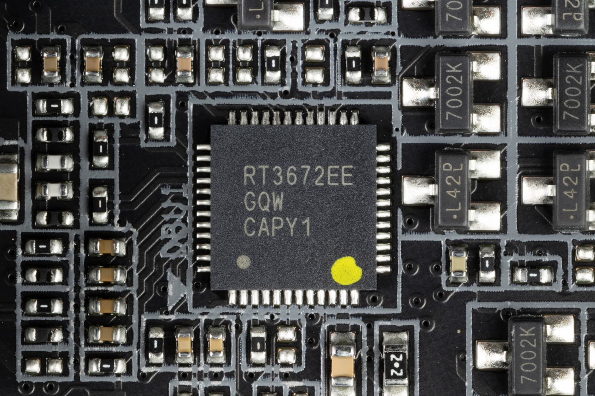 Управляет этой схемой ШИМ-контроллер RT3672 от Richtek.