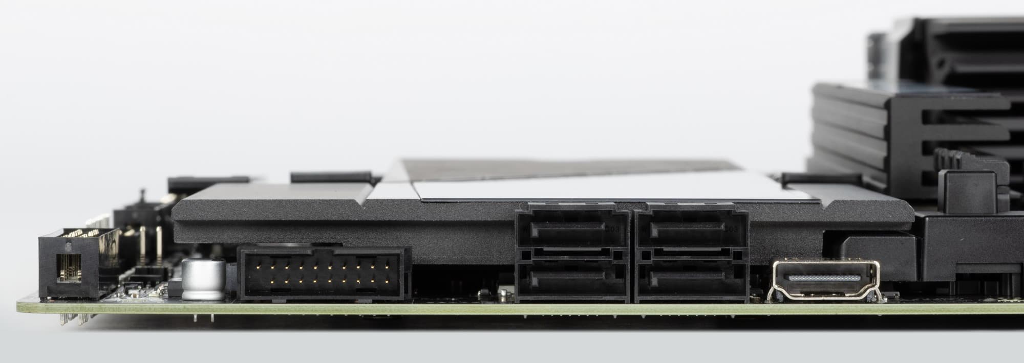 Всего у платы 4 разъема Serial ATA 6 Гбит/с + 4 слота для накопителей в форм-факторе M.2.