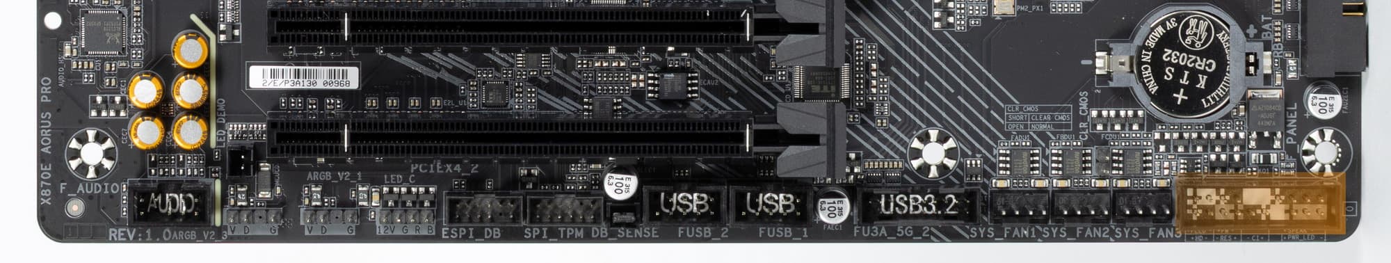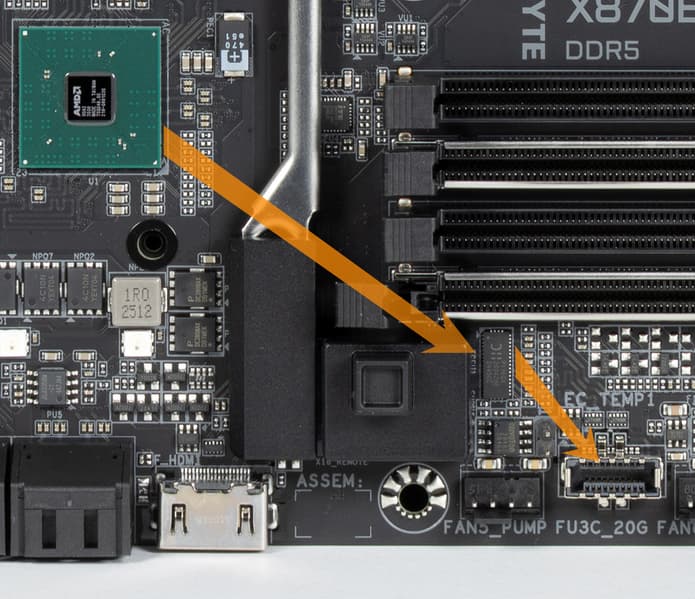 - 1 порт USB 3.2 Gen2x2: реализован с помощью X870E и представлен внутренним портом Type-C (для подключения к соответствующему разъему на передней панели корпуса);