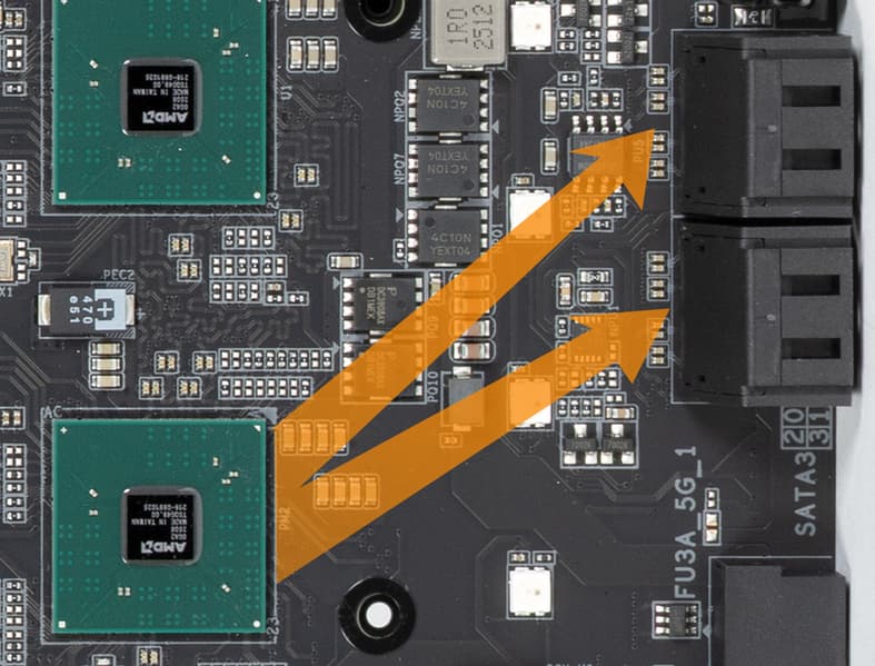 Плюс 18 линий PCIe, выделенные на поддержку иной периферии. Итого, у X870E в данном случае реализовано 28 высокоскоростных портов.