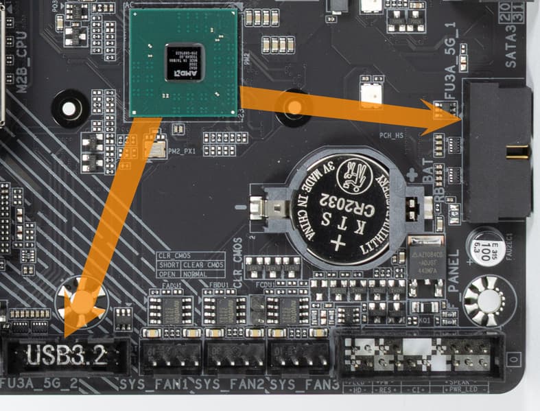 Все быстрые USB 3.2 порты оснащены ре-драйверами.