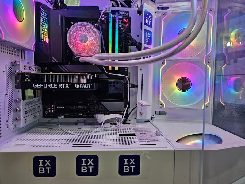 | Прочие внутренние элементы | 24-контактный разъем питания ATX 2 8-контактных разъема питания EPS12V 1 слот M.2 (E-key), занят адаптером беспроводных сетей 1 разъем для подключения порта USB 3.2 Gen2x2 Type-C 2 разъема для подключения 4 портов USB 3.2 Gen1 2 разъема для подключения 4 портов USB 2.0 8 разъемов для подключения 4-контактных вентиляторов и помп ЖСО 3 разъема для подключения адресуемой ARGB-ленты 1 разъем для подключения неадресуемой RGB-ленты 1 разъем аудио для передней панели корпуса 1 разъем для систем безопасности TPM 1 разъем для датчика шума 2 разъема для термодатчиков 1 разъем для подключения управления с передней панели корпуса |