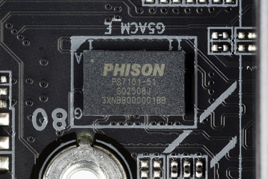 Для поддержания стабильных частот на шине PCIe имеются усилители (ре-драйверы) сигнала PCIe 5.0 от Phison.