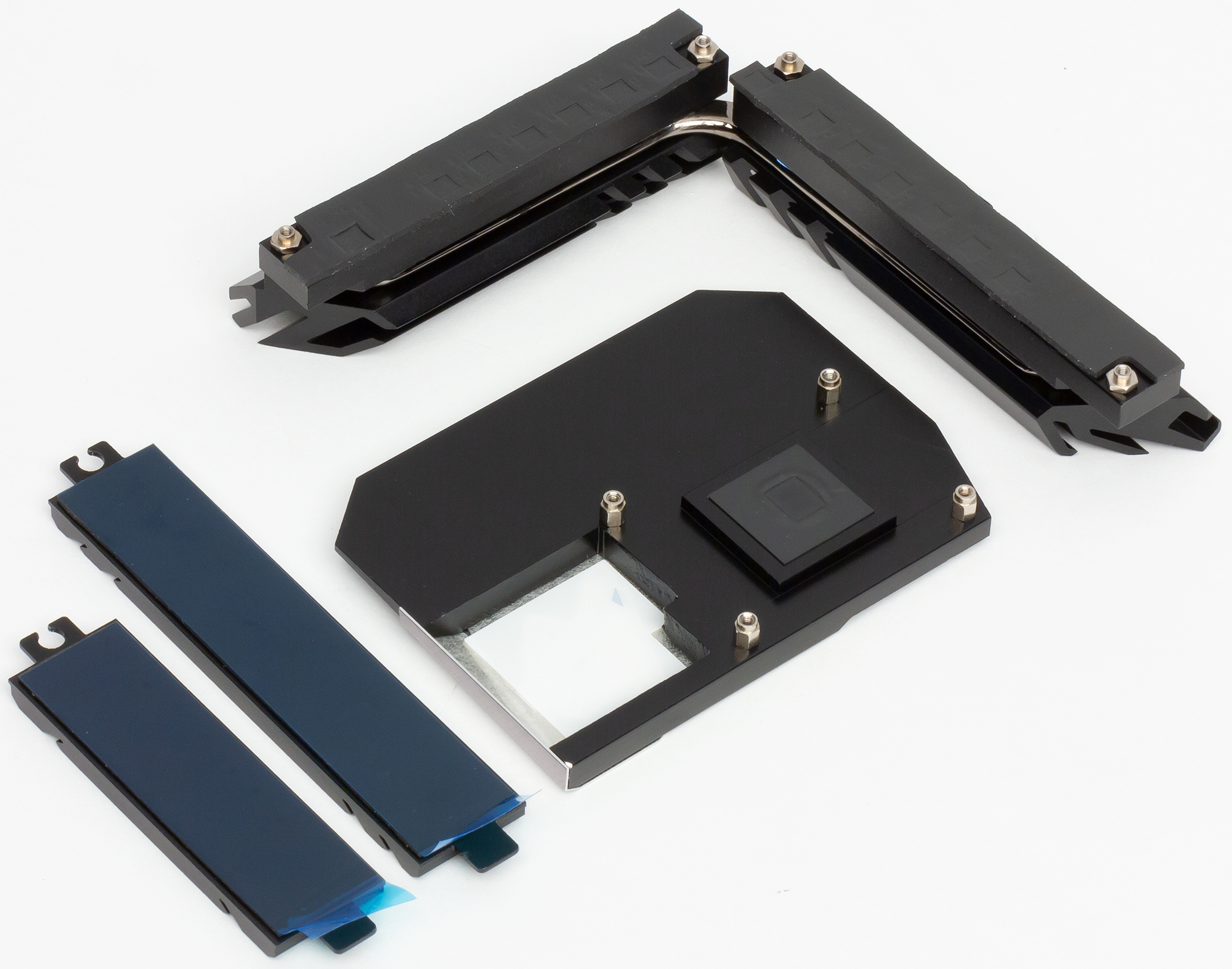 Они выполнены из алюминия и имеют термопрокладки, а пара радиаторов на VRM-цепях соединена друг с другом 6-миллиметровой тепловой трубкой.