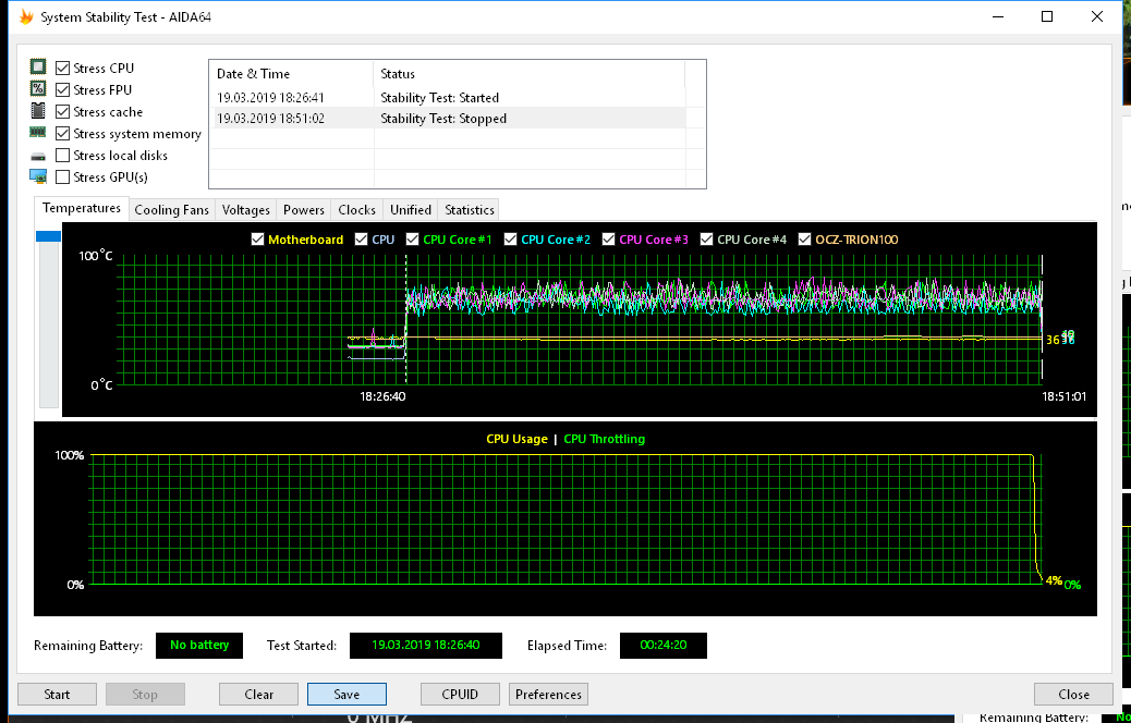Ну и, наверное, самая загадочная для меня вкладка записи состояния системы (мониторинга). Можно записывать кучу параметров с продолжительностью от 1 часа до нескольких суток. Вопрос лишь в том, почему запись идет «от 1 часа»? Если, например, погонять тесты 15 минут, то лог нигде не сохраняется.