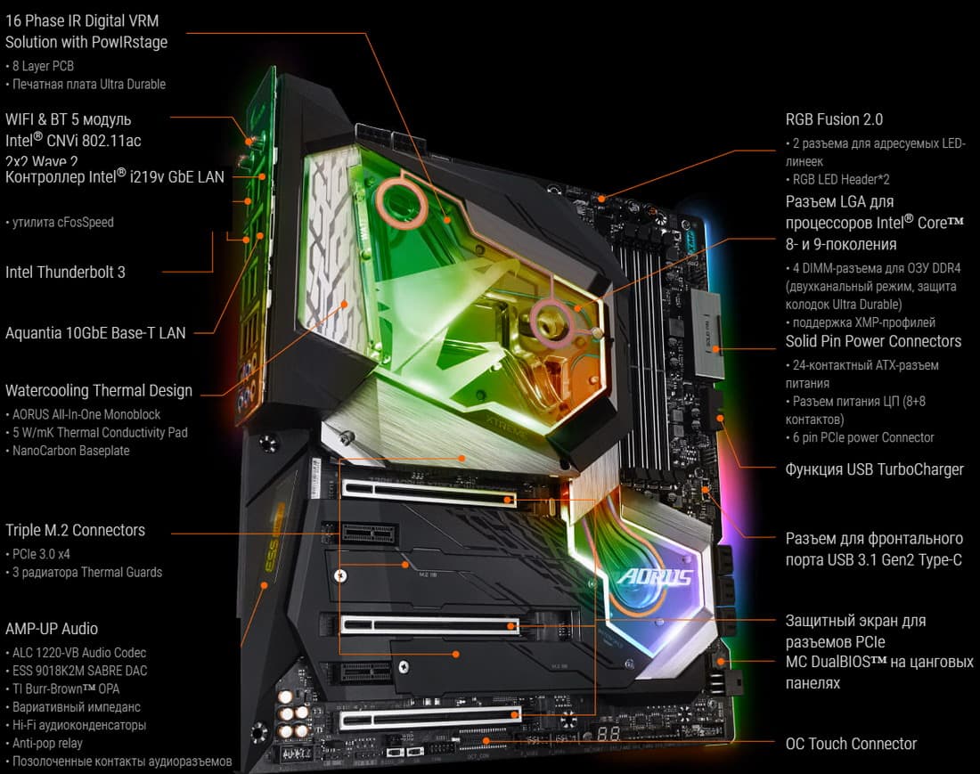 - материнская плата Gigabyte Z390 Aorus Xtreme WaterForce;