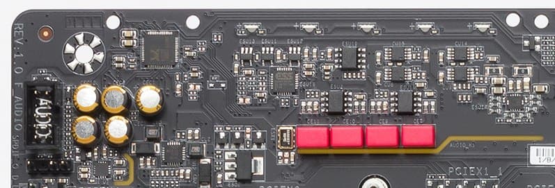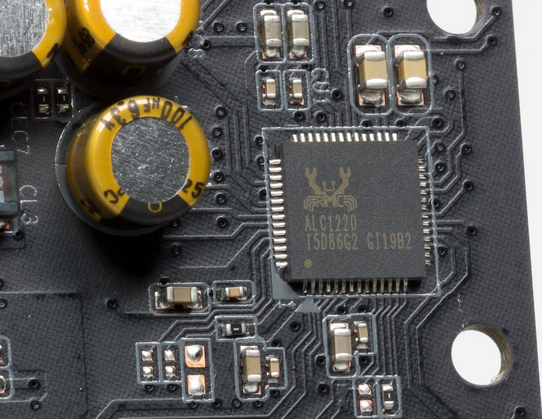 Как и практически во всех современных материнских платах, звуком заведует аудиокодек Realtek ALC1220 (в данном случае — улучшенный вариант ALC1220-VB). Он обеспечивает вывод звука по схемам до 7.1.