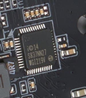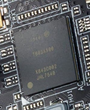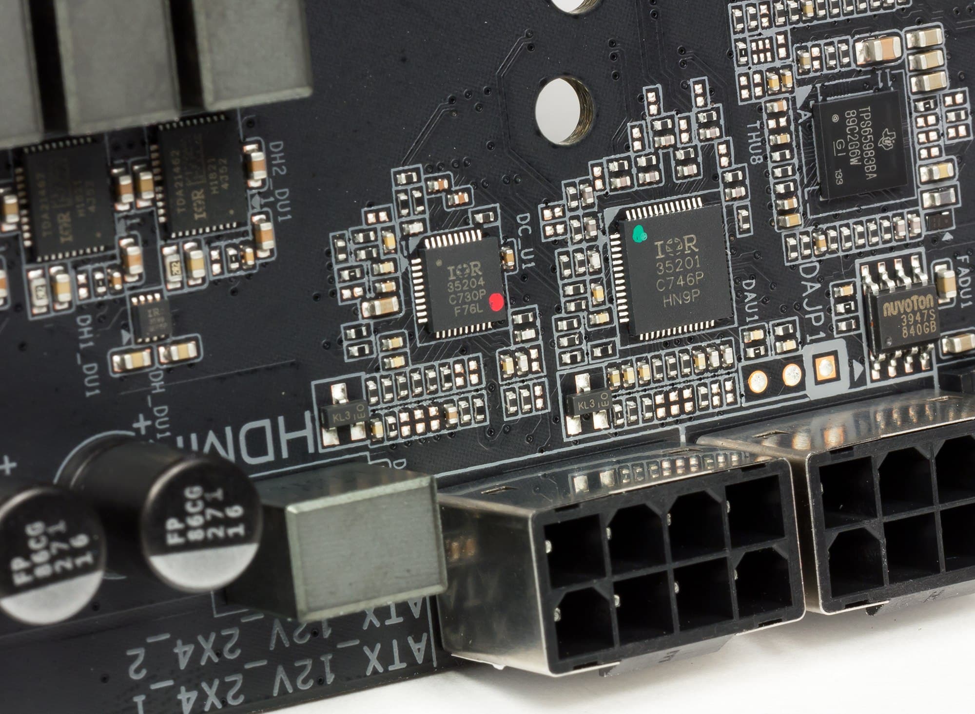 Рядом расположен контроллер IT8795E, который позволяет обновить прошивку UEFI/BIOS на пустой материнской плате (без процессора и памяти): достаточно просто подключить питание, вставить флешку с новой прошивкой (заранее скачанной из интернета) и включить плату. Индикаторы сообщат об удачном или неудачном обновлении. Эта технология под названием Q-Flash Plus существует у Gigabyte уже несколько поколений материнских плат.