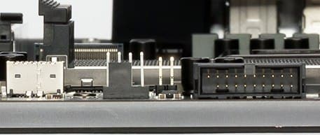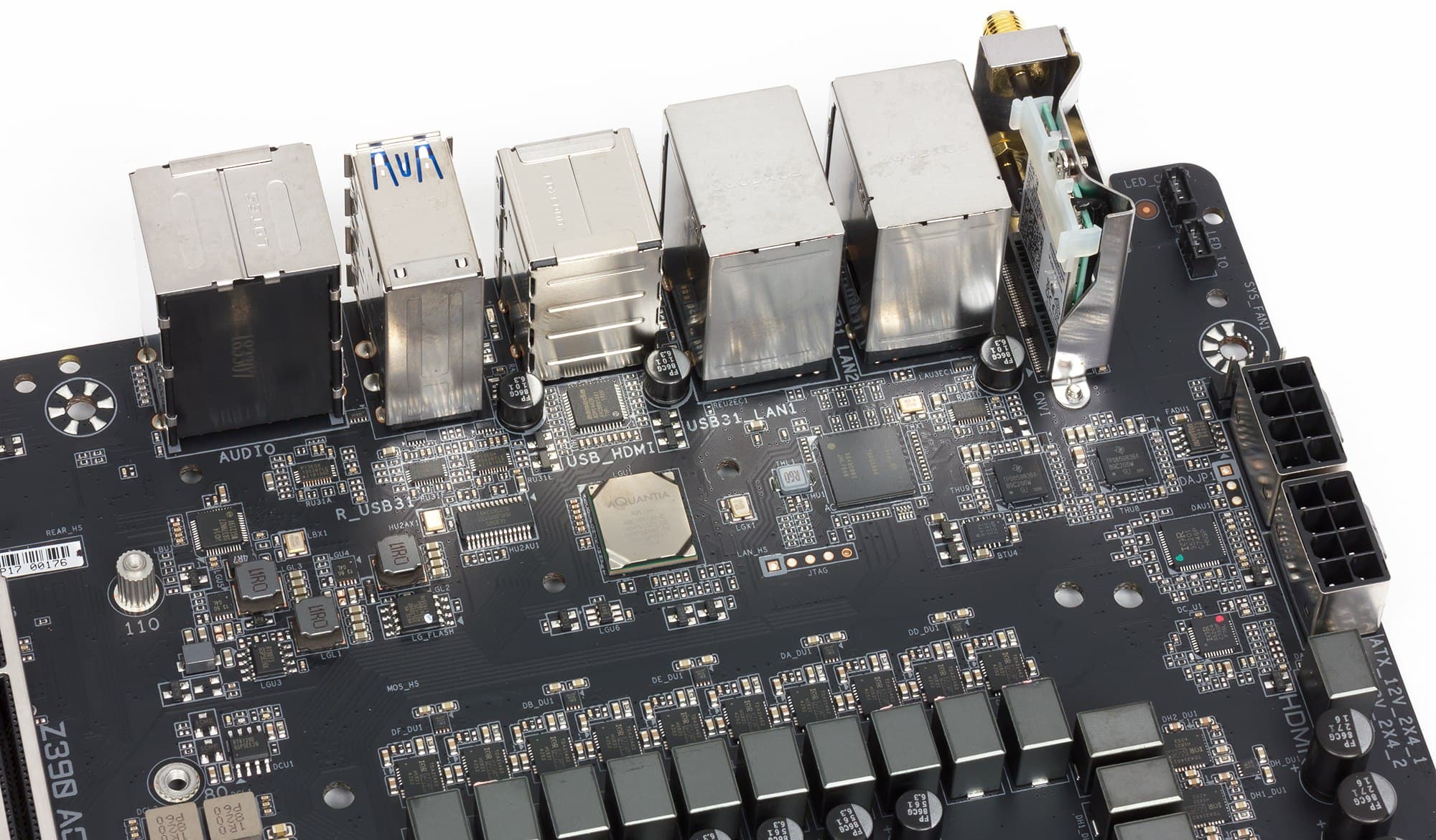 Данная версия интерфейса, разработанного Intel, поддерживает скорость передачи данных до 40 Гбит/с и до 6 устройств с одного выхода (через хабы). У данной платы есть 2 порта USB 3.1 формата Type-C на задней панели, вывод Thunderbolt осуществляется через них. Работа этих портов также поддерживается микросхемами Texas Instruments TPS65983A.