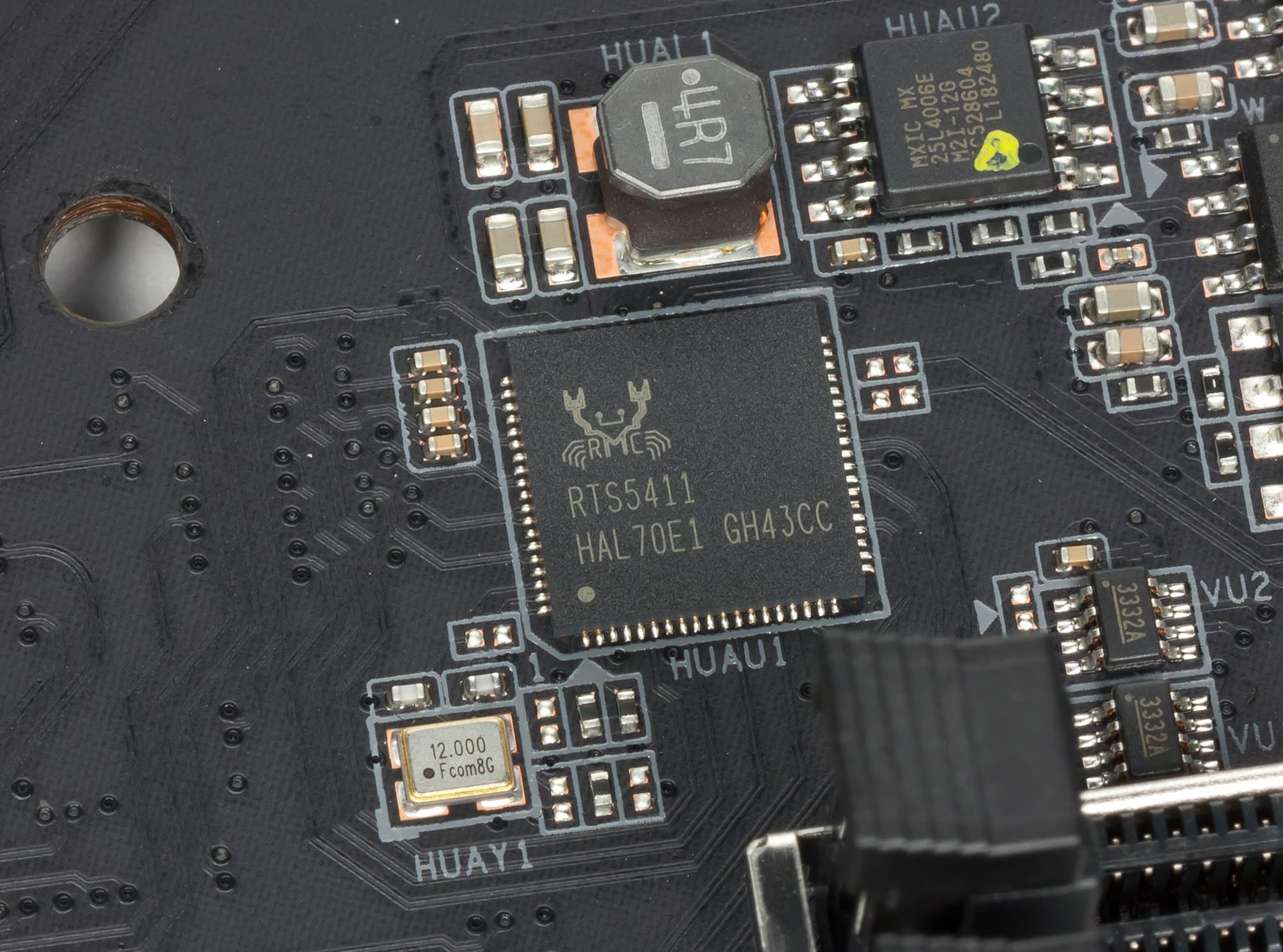 - еще 2 порта реализованы через концентратор USB 2.0 (Realtek RTS5411) и представлены разъемами Type-A (черного цвета) на задней панели.