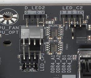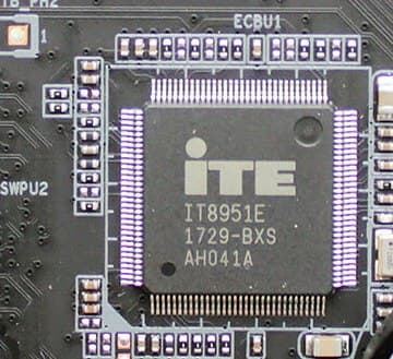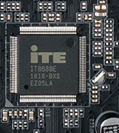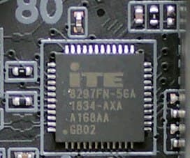Если уж мы заговорили о световых индикаторах, то надо упомянуть и возможности материнской платы по подключению RGB-подсветки. За нее отвечает контроллер ITE 8297FN.