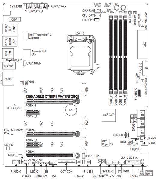 Gigabyte Z390 Aorus Xtreme WaterForce — материнская плата, основанная на чипсете Intel Z390, для процессоров Intel Core 8-го и 9-го поколения.