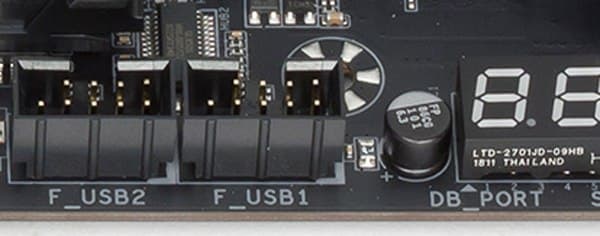 - 6 портов USB 2.0/1.1: 4 порта реализованы через Z390 и представлены 2 внутренними разъемами на материнской плате;