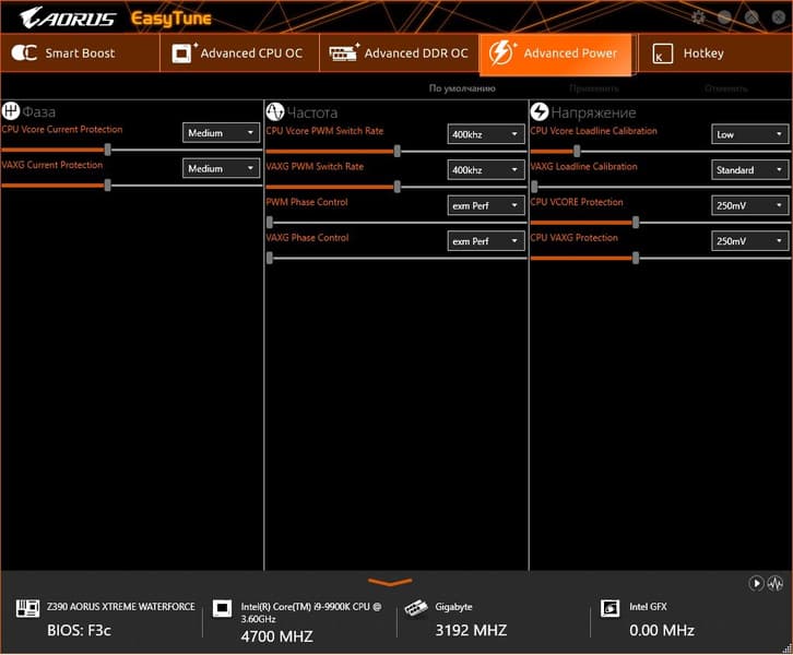 Таким образом, с помощью EasyTune можно широко «внедряться» в конфигурацию частот и напряжений для получения более высокой производительности работы системы, а лезть в настройки UEFI/BIOS для этой цели не обязательно. Впрочем, в утилите представлены не все возможные настройки, так что для экстремального разгона этой программой не обойтись.