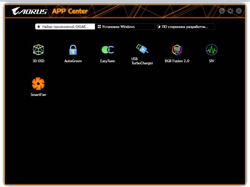 Все программное обеспечение можно скачать с сайта производителя gigabyte.com. Основная программа — так сказать, менеджер всего «софта» — это Aorus App Center. Ее и следует установить первой.