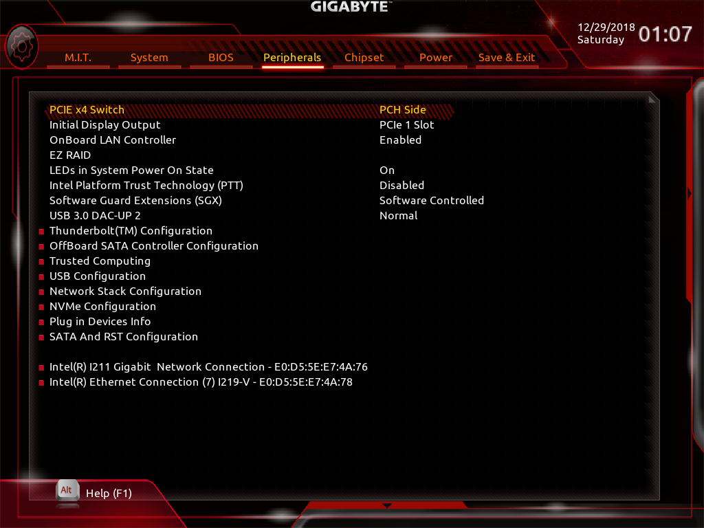 Плата обладает практически полным набором нужных на сегодня разъемов и интерфейсов, прекрасной сетевой поддержкой (2 проводных гигабитных интерфейса, Wi-Fi 802.11ac, Bluetooth), возможностью создания очень быстрых RAID-массивов из SSD в слотах PCI-E и в слотах M.2. Разумеется, есть поддержка Intel Optane Memory. Из недостатков бросилось в глаза лишь размещение первого слота PCI-E x1 сразу за PCI-E x16: из-за громоздкой системы охлаждения мощных современных карт он может быть недоступен. Впрочем, позиционирование материнки предполагает, возможно, использование однослотовых Nvidia Quadro. Да и вообще, периферии для PCI-E x1 не так уж много, все с избытком интегрируется на материнскую плату.